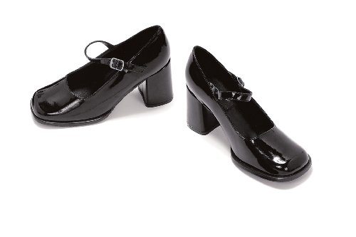 Includes: One pair of black adult shoes with a small wide heel. Available in women sizes 6, 7, 8, 9, and 10.